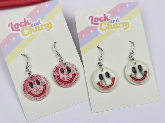 Glow in the Dark Spooky Smiley Halloween Clay Earrings