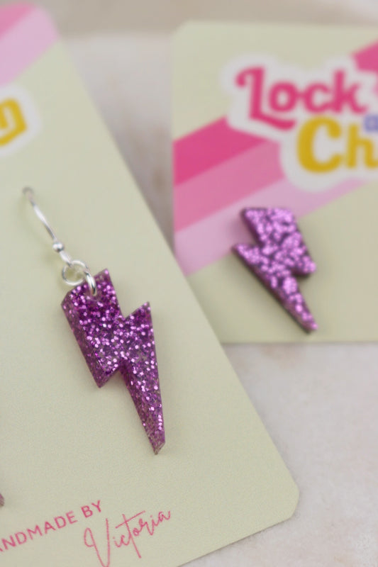 Purple Glitter Sparkly Lightning Bolt Acrylic Earrings