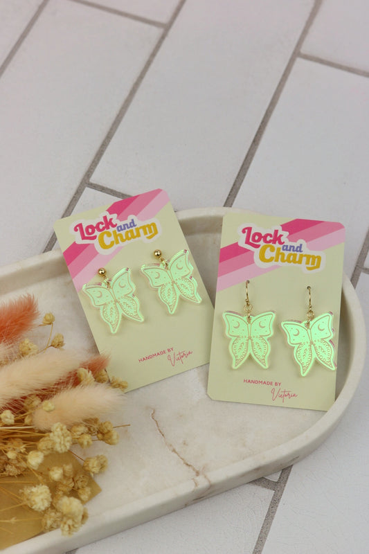 Iridescent Acrylic Lunar Moth Earrings