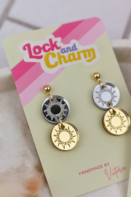 Double Sided Gold and Silver Acrylic Sun Hoop Earrings