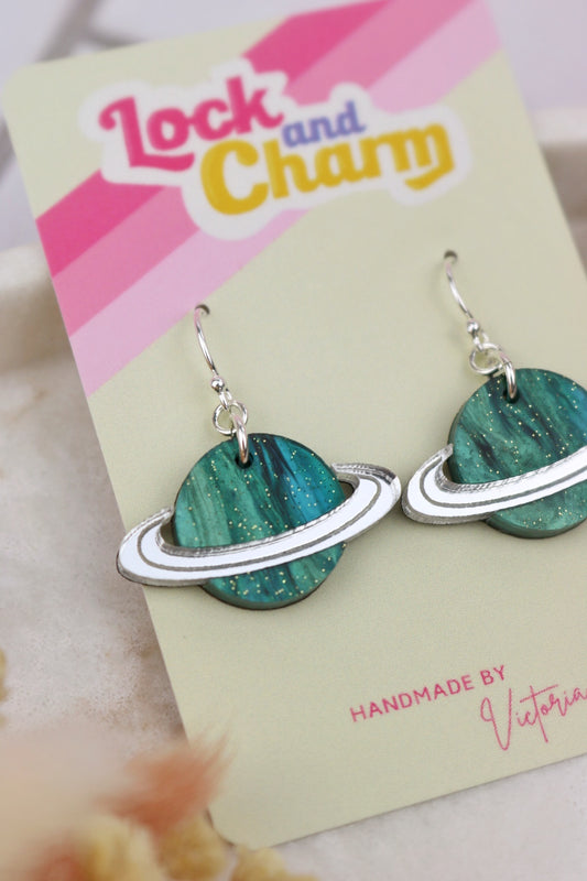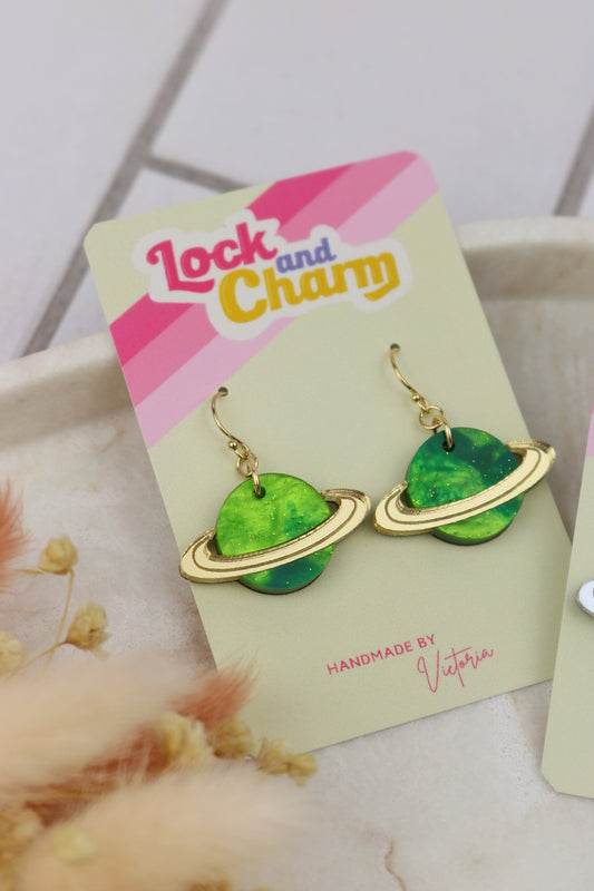 Green Marbled Planet Acrylic Earrings