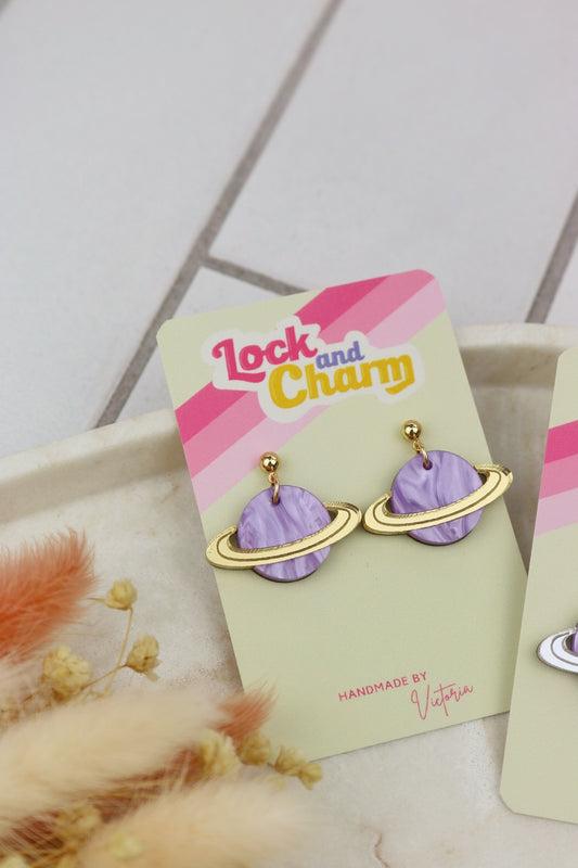 Purple Marbled Acrylic Planet Earrings