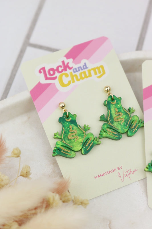 Green Marbled Acrylic Frog Earrings
