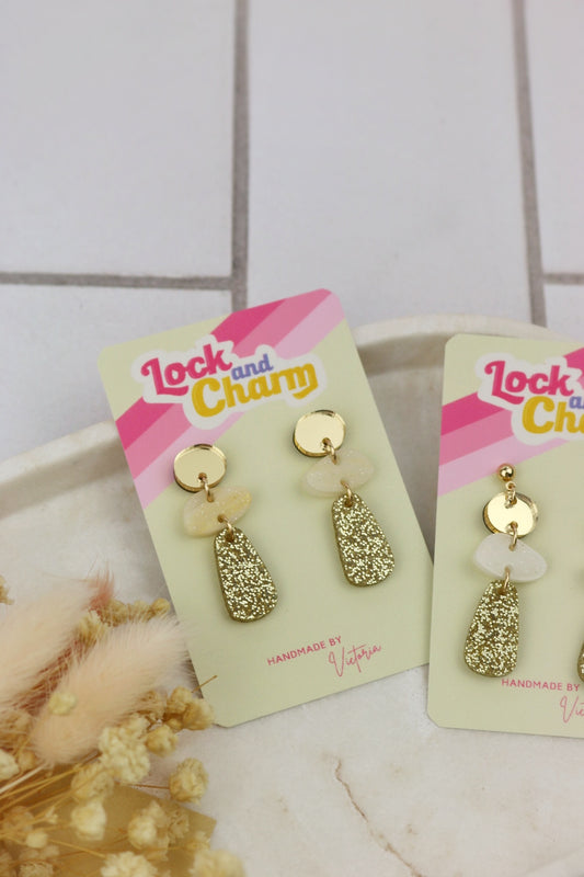 Gold Glitter Sparkly 3 Tier Acrylic Earrings