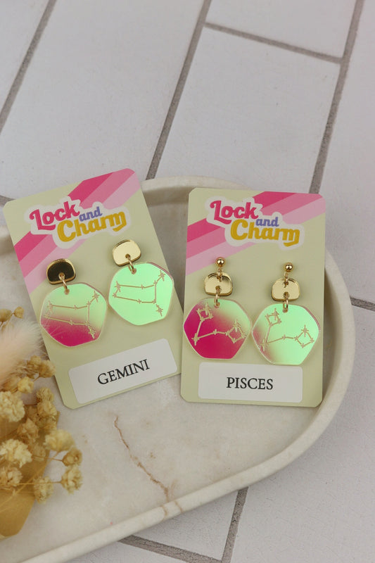 Iridescent Star Sign Zodiac Acrylic Earrings