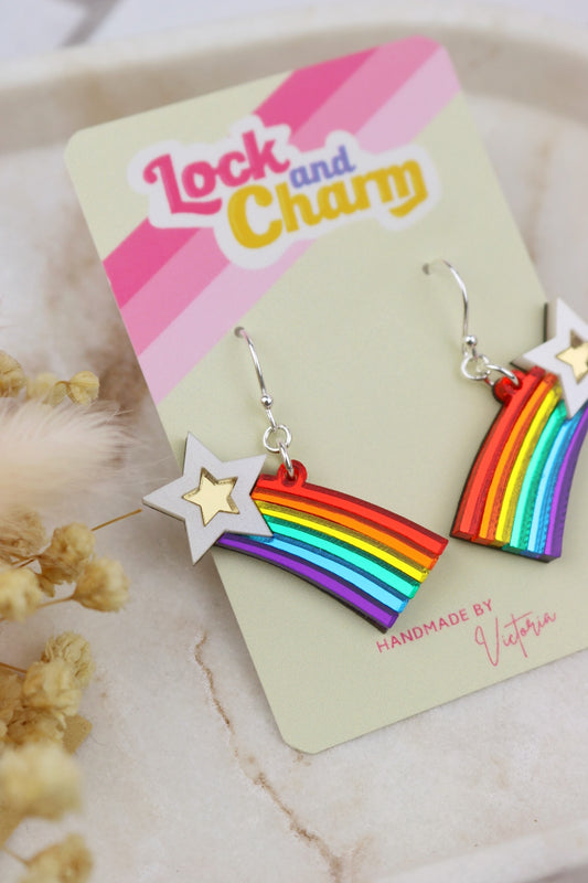 Rainbow Acrylic Shooting Star Earrings