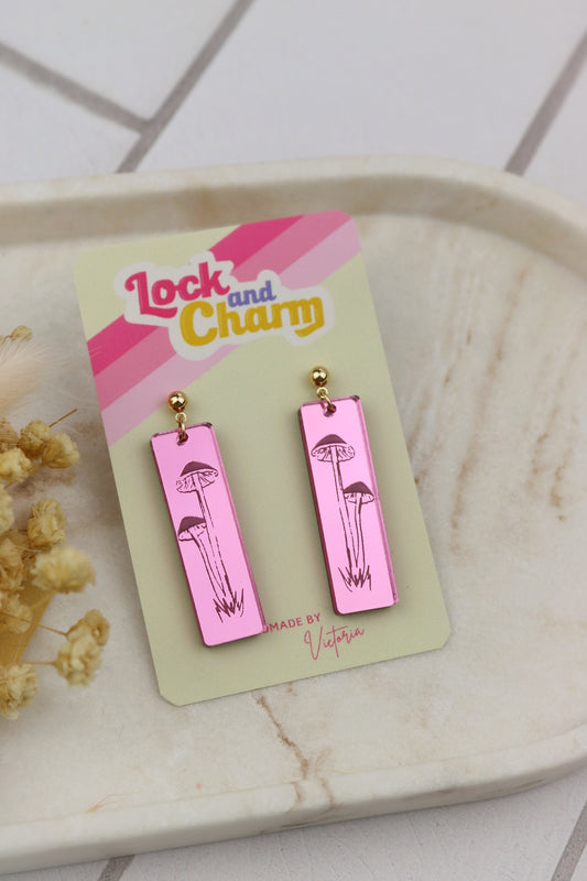 Engraved Mushroom Acrylic Rectangle Earrings