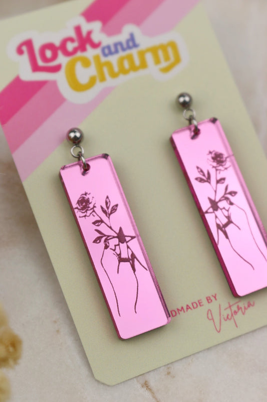 Engraved Rose Acrylic Rectangle Earrings