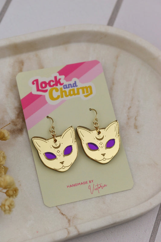 Gold Acrylic Mystical Cat Earrings