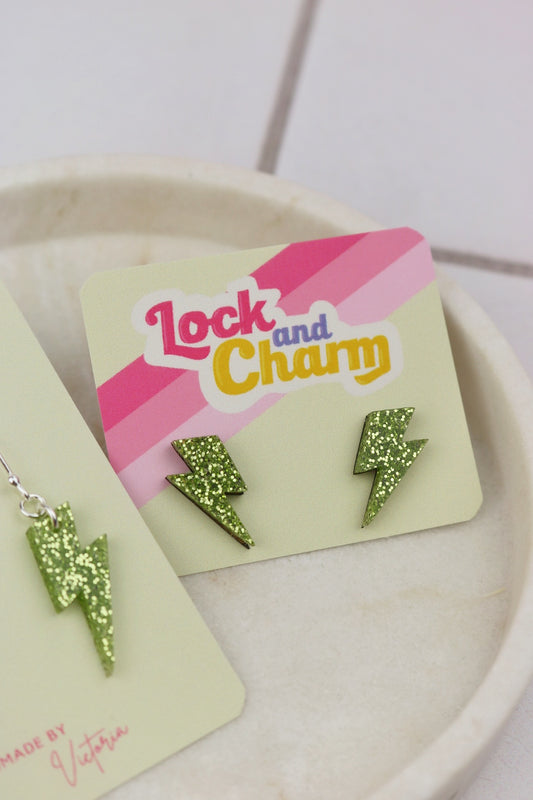 Green Glitter Sparkly Lightning Bolt Acrylic Earrings