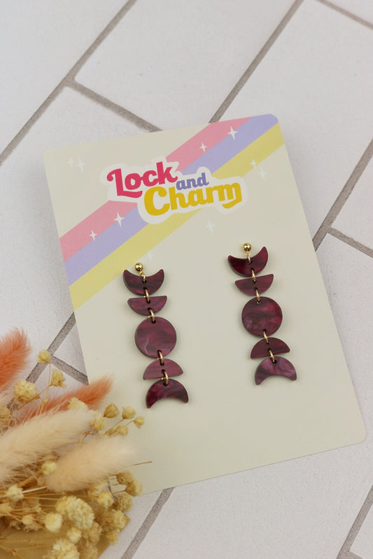 Purple Marbled Moonphase Statement Acrylic Earrings