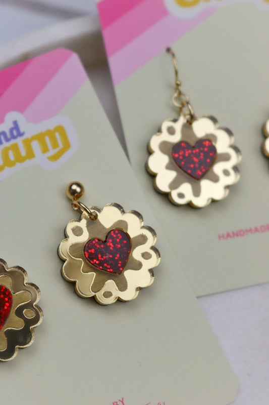 Gold and Red Sparkly Jam Biscuit Acrylic Earrings