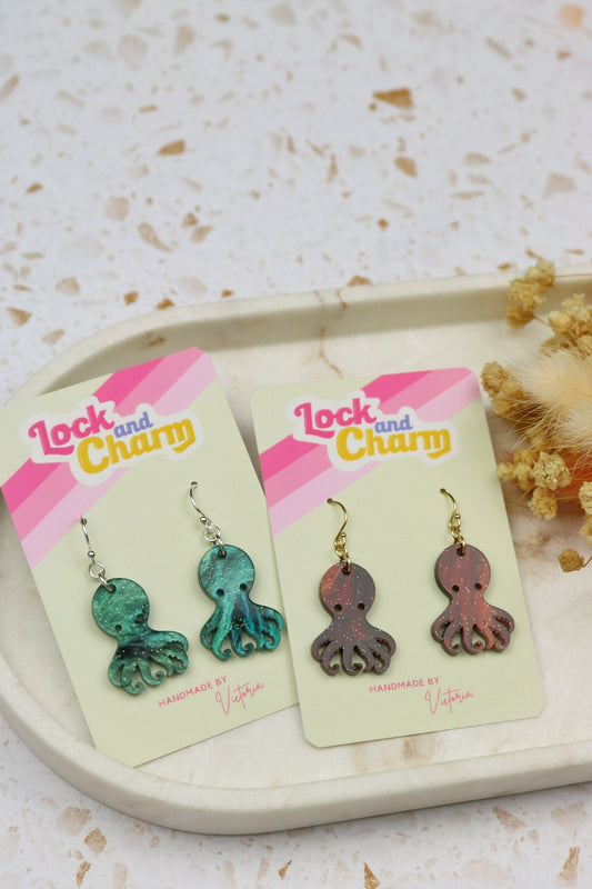 Brown and Blue Marbled Octopus Acrylic Earrings