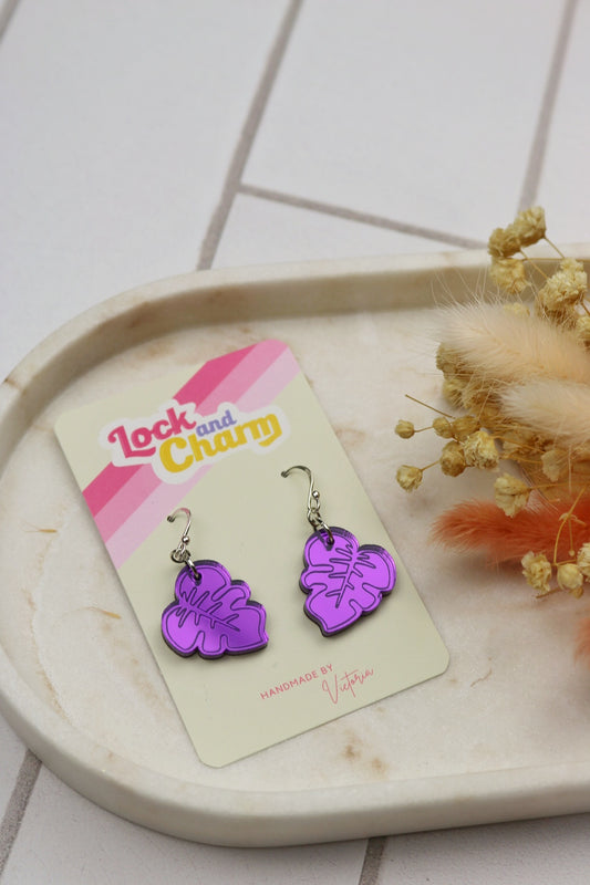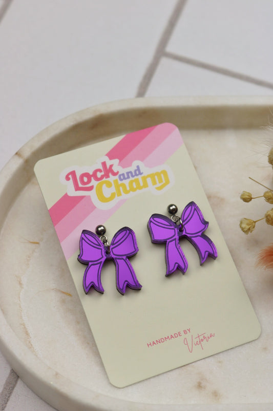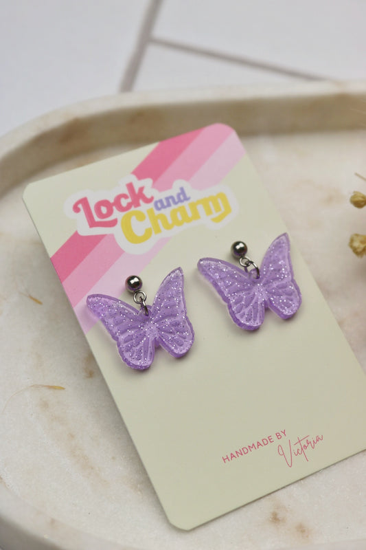 Purple Glitter Sparkly Acrylic Butterfly Earrings