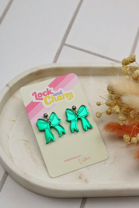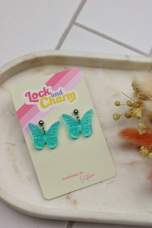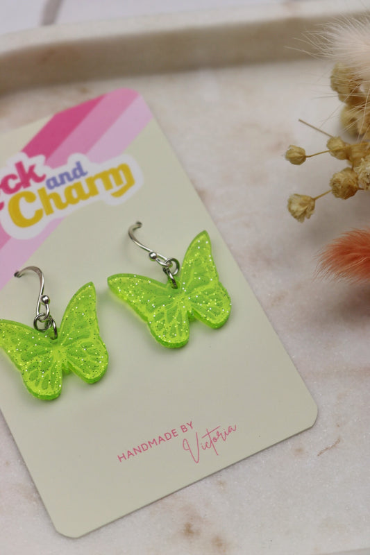 Green Glitter Sparkly Acrylic Butterfly Earrings