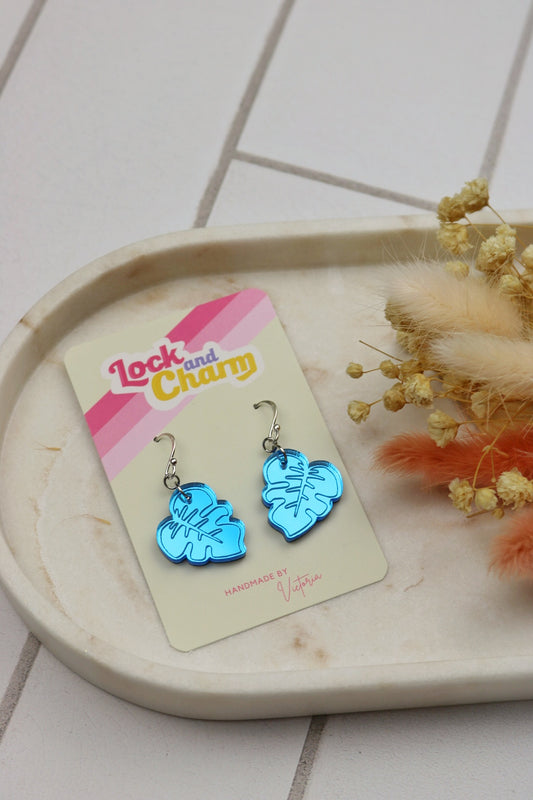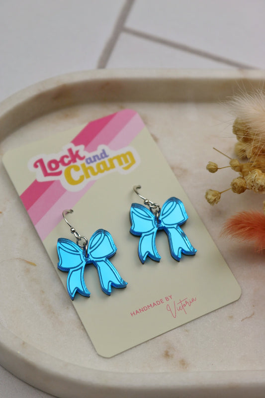 Blue Glitter Sparkly Acrylic Butterfly Earrings
