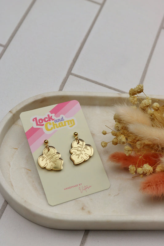 Swirly Night Sky Blue Acrylic Cloud Earrings with Gold Drops
