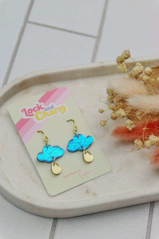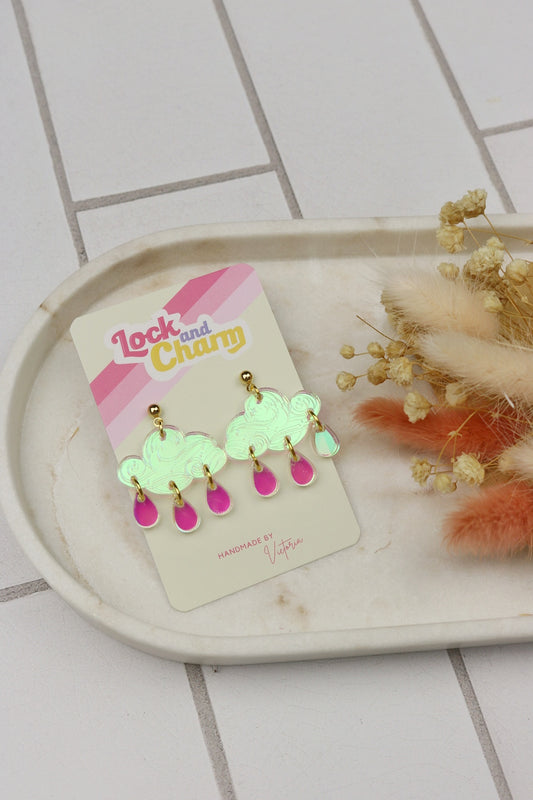 Swirly Night Sky Iridescent Cloud Earrings with Droplets