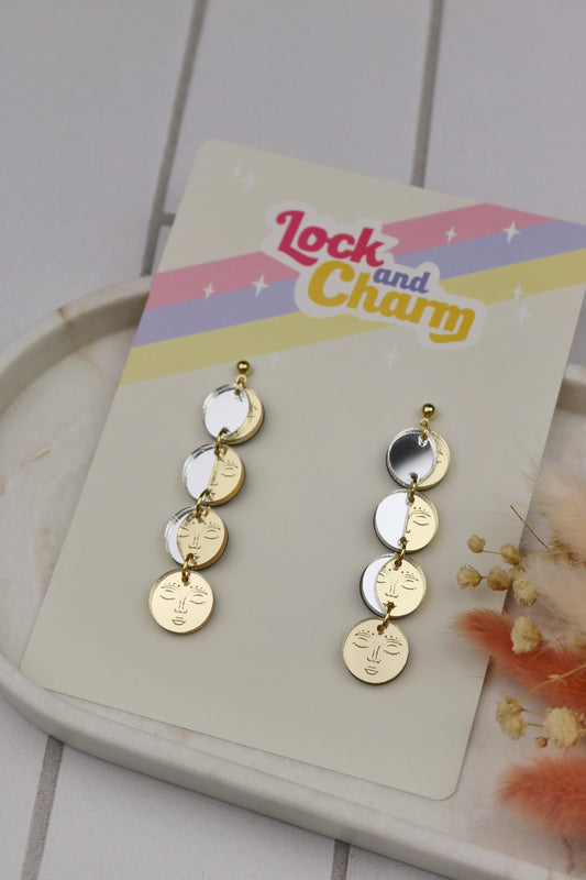 4 Tier Sun and Moon Acrylic Statement Earrings