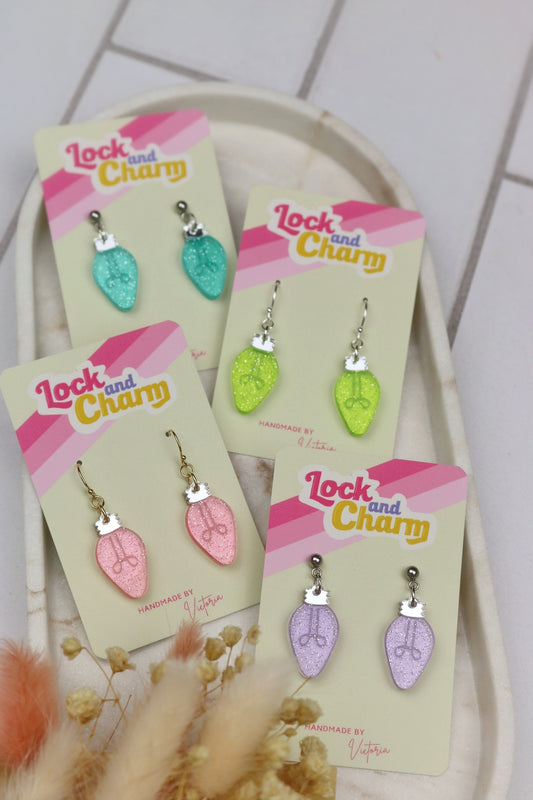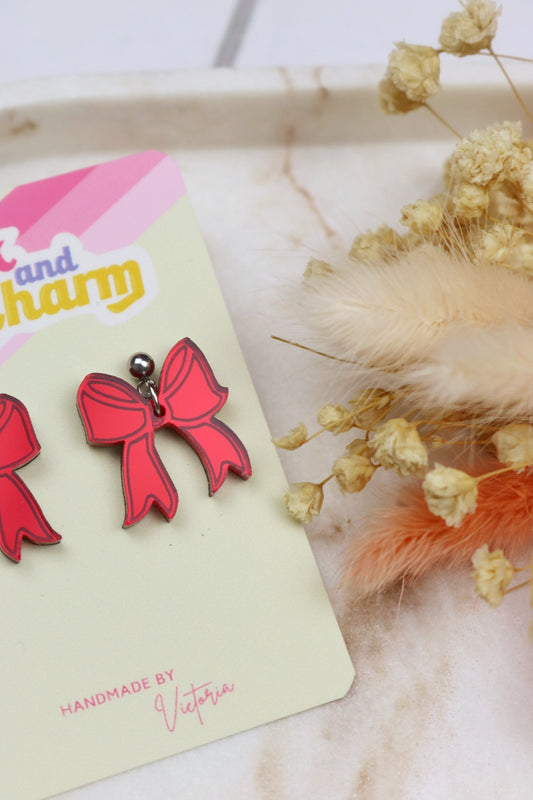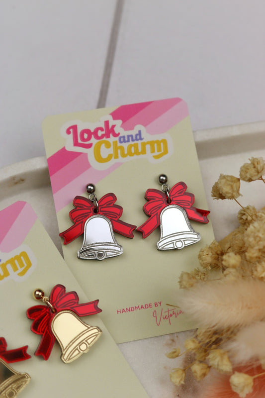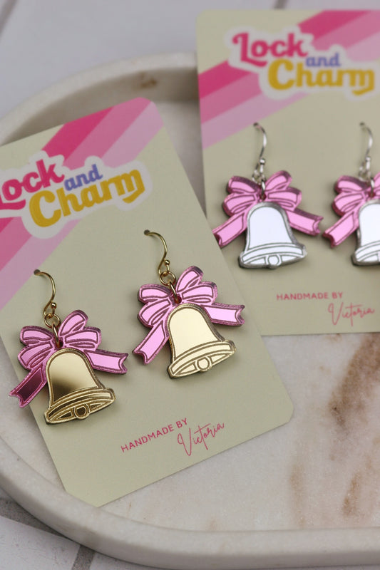 Pink Ribbon Bell Acrylic Christmas Earrings