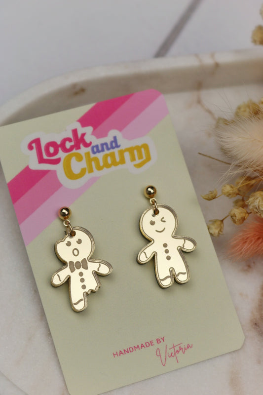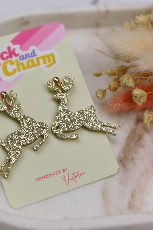 Gold Glitter Reindeer Sparkly Acrylic Earrings