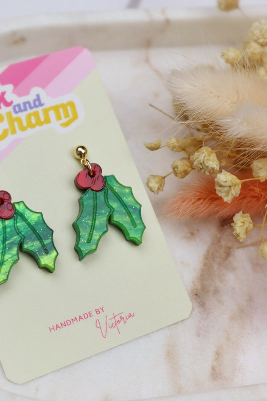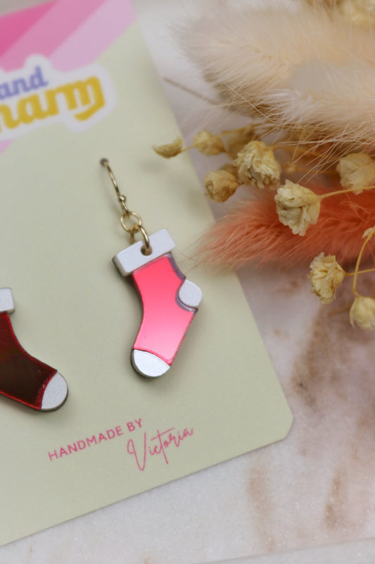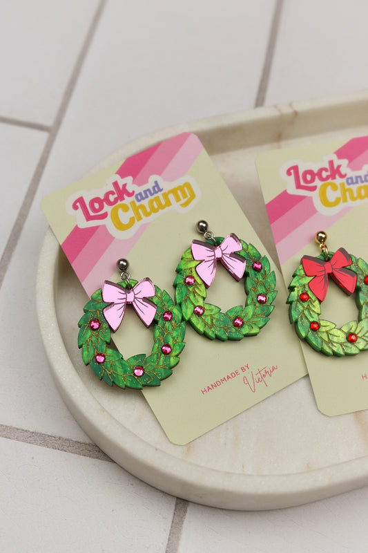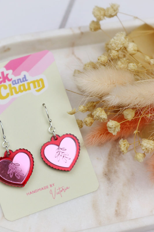 Scalloped Heart Red and Pink Mistletoe Acrylic Earrings