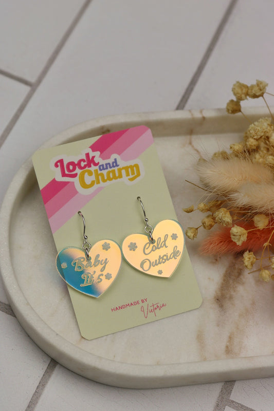 Iridescent 'Baby it's Cold Outside' Acrylic Heart Earrings