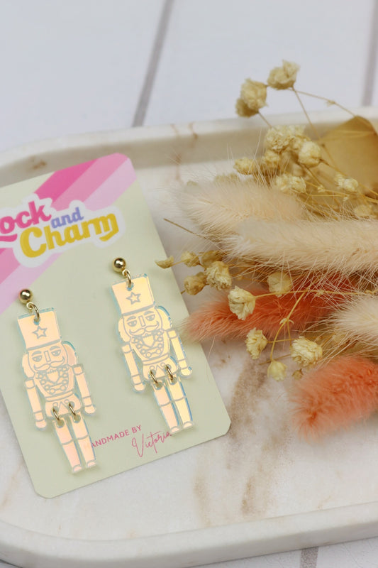 Iridescent Nutcracker Christmas Acrylic Earrings