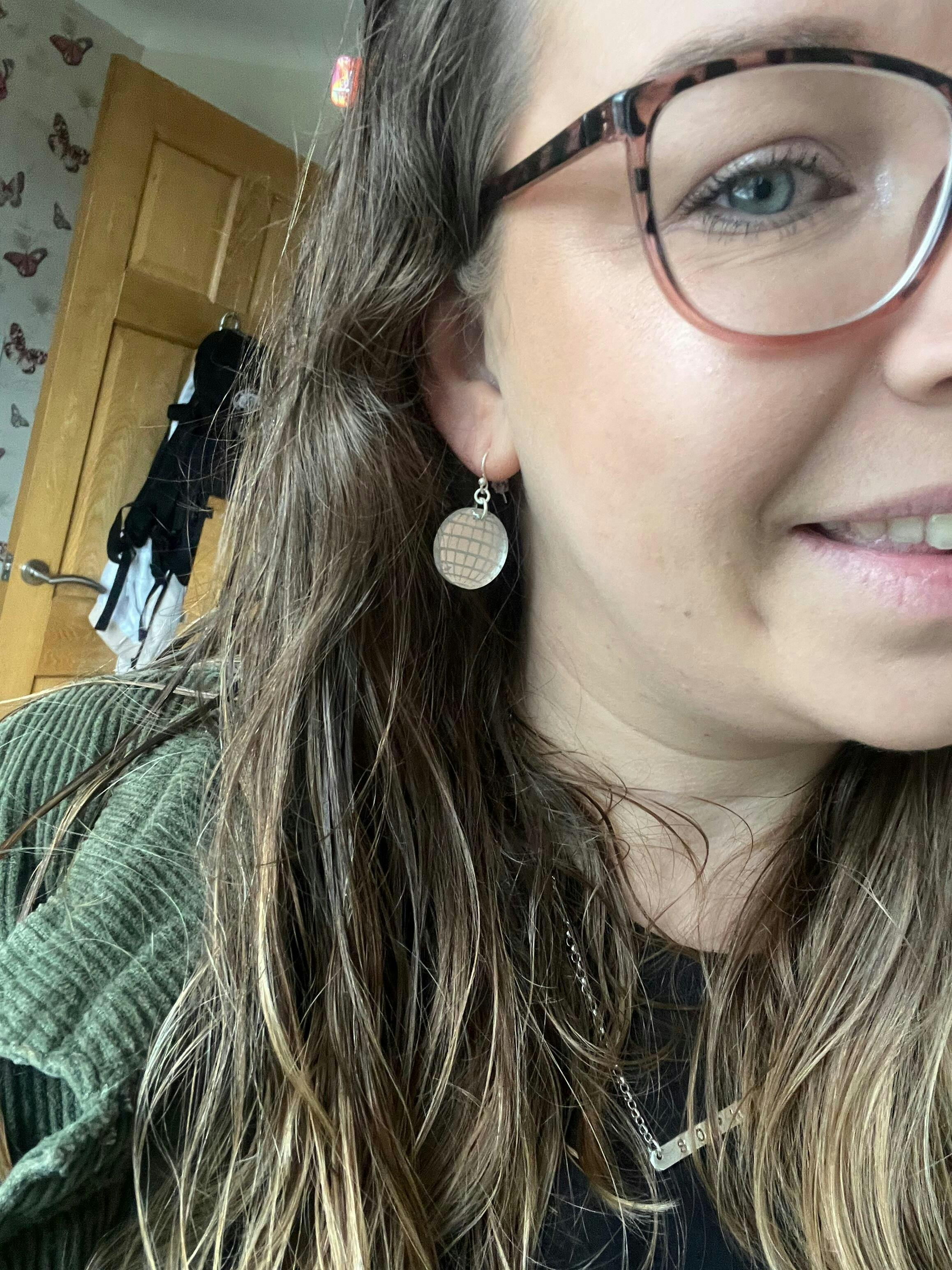 Disco Ball Silver Acrylic Earrings