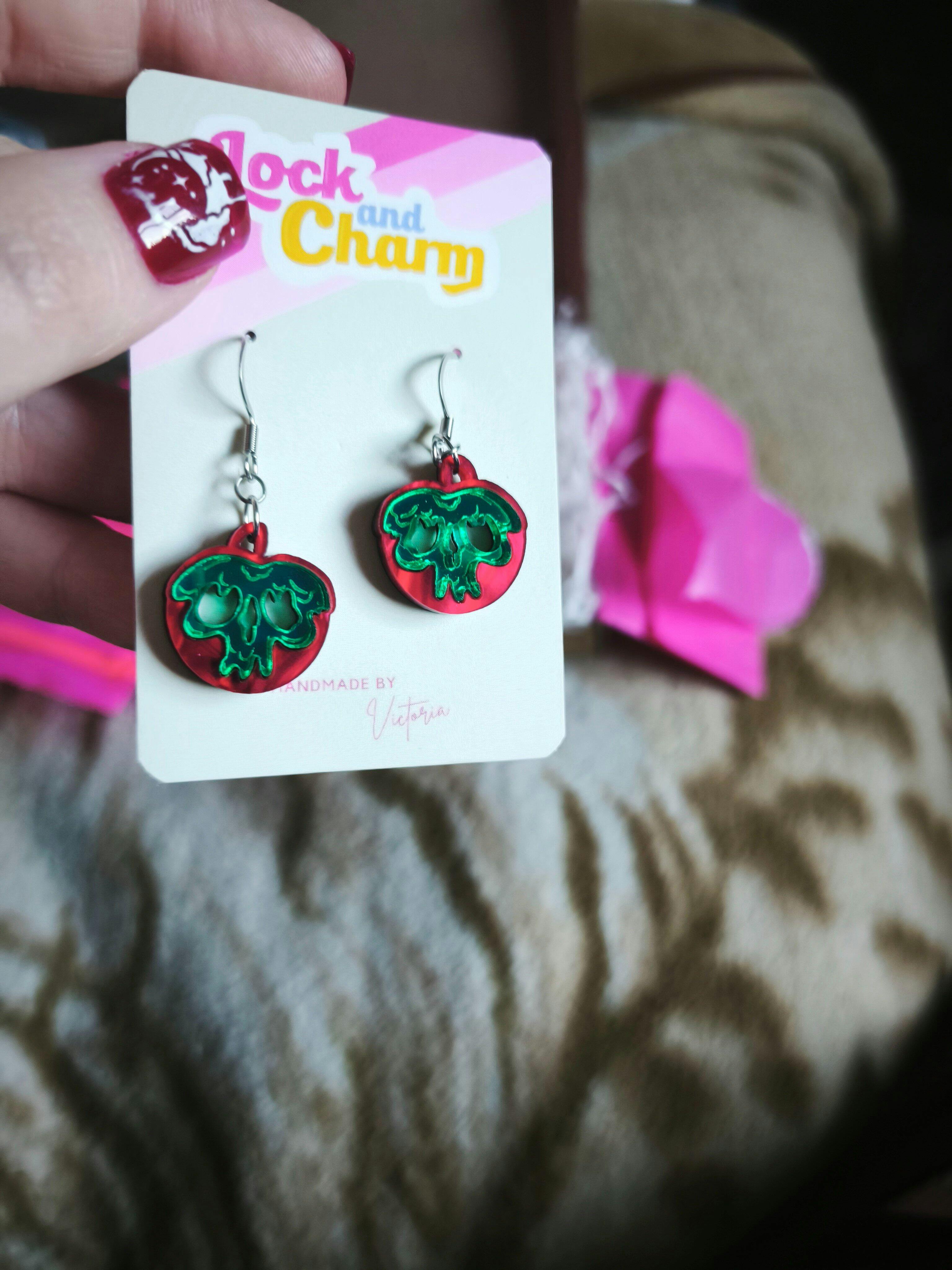 Poison Apple Green and Red Acrylic Halloween Earrings